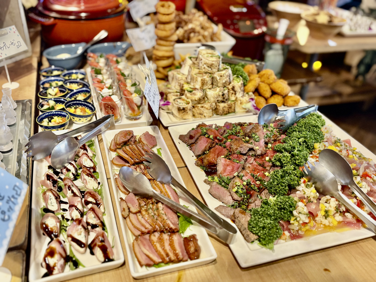 追いコンのメッセージDVDを大型スクリーンで皆で見れますよ!お食事はビュッフェスタイルで自由にお使いいただけます!